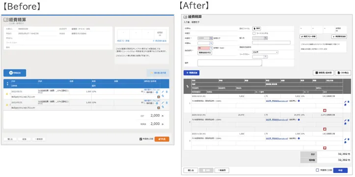 パソコン版「楽楽精算」の各画面のデザインが変わるため、