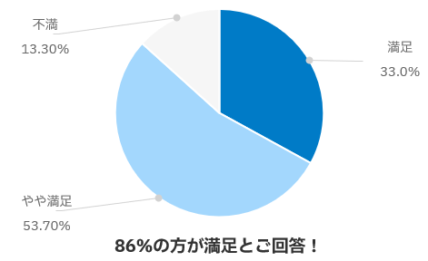 8割 のお客様にご満足いただけている結果となりました。