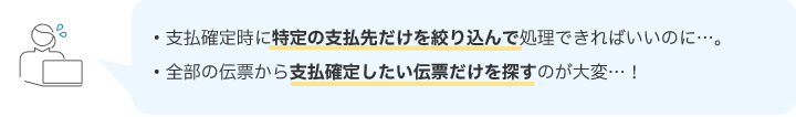 支払先ごとに特定の伝票だけを絞り込んで、支払確定したい!