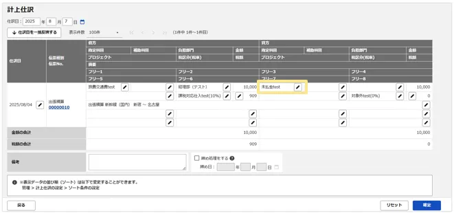 本メニューでの設定変更が反映されるのは、設定変更後に確定した仕訳データのみです。