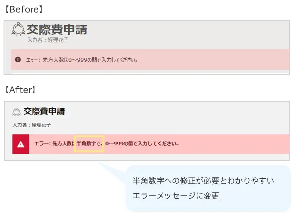 これにより、入力ミスが発生しても申請者自身で修正箇所に気が付き、