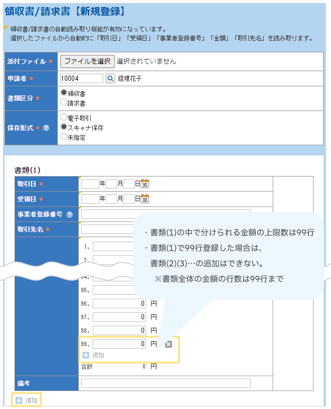 【After】 1枚の領収書/請求書に対しての上限件数が最大99行