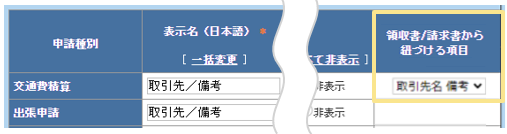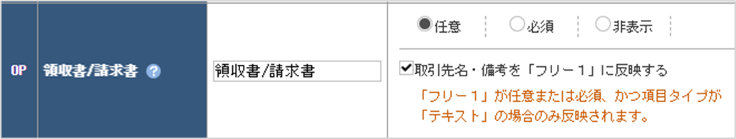 明細項目フリー1「領収書/請求書から紐づける項目」の設定 ![]() |