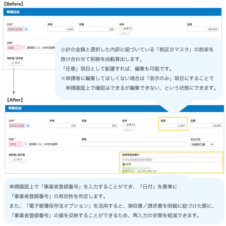 ▶「事業者登録番号」や「税額」を申請画面に配置する手順
