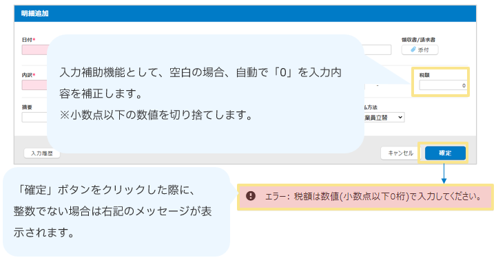 - 税額の按分入力が可能です。(詳細は費用按分の設定手順 > 按分情報を入力する > 明細)