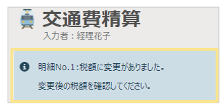 ・「項目設定」が「任意」で、税額の再計算が必要な場合はヘルプメッセージが表示されます。