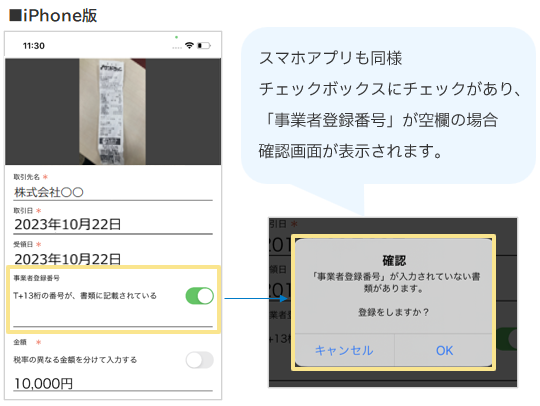 「T+13桁の番号が、書類に記載されている」というチェックボックスが追加されます。