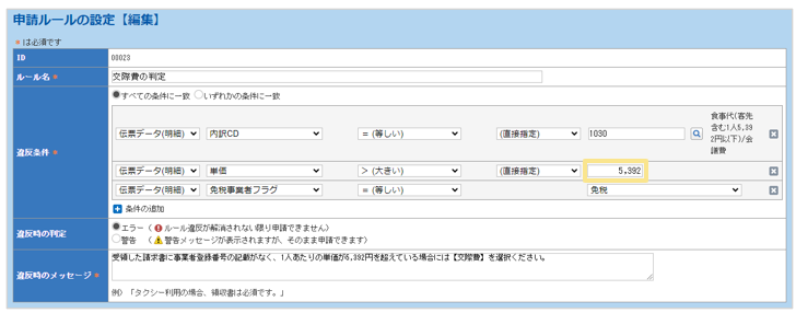 申請ルールの設定をされている場合、基準額の見直しが必要になります。