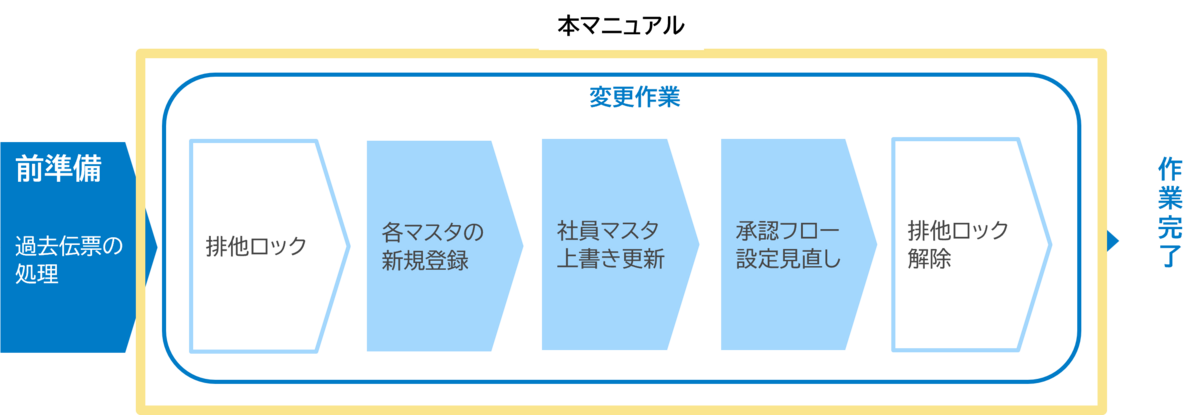 人事異動の際に行う手順について、全体の流れは以下の通りです。