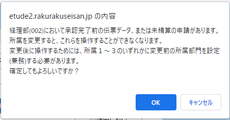 旧部門で未精算・承認依頼中の伝票が残った状態だと、該当する伝票処理に影響が生じます。