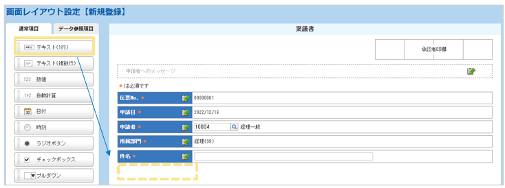 申請画面のヘッダ項目としてのみ配置が可能です。