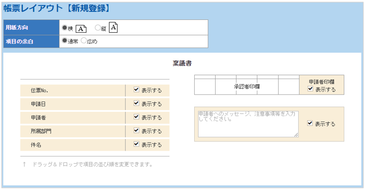 「帳票レイアウト」の設定を行います。
