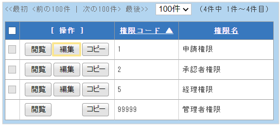 - 編集をする権限マスタの「編集」をクリック