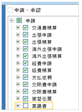 「承認」内の新しく追加したワークフローにもチェックを付けてください
