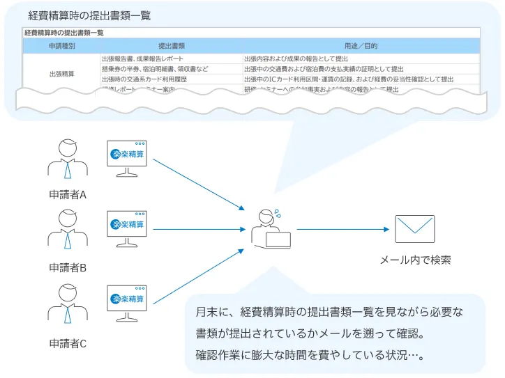 経費精算の際に書類を別途提出させていることが非効率だということに気づきました。