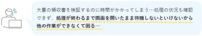 ■電子帳簿保存法対応の大量検証、処理件数や処理中の待機時間にお困りではありませんか?