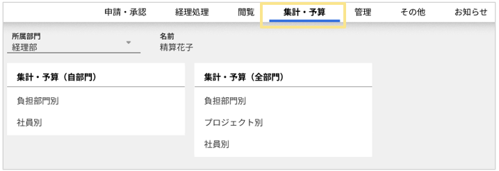 トップ > 画面のメニュー名で調べる > 集計・予算タブ > 集計・予算タブ(※オプション機能) 楽楽精算CS 2023/03/20 09:00 集計・予算タブ(※オプション機能) 集計・予算(自部門/全部門)(「予算管理オプション」の機能) (記事ID:2129) いいね 共有する 共有する リンクをコピー