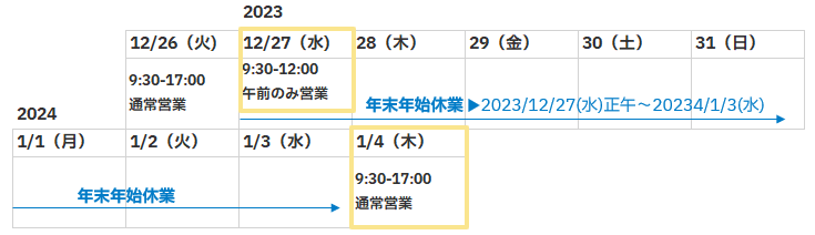年末年始の営業について(2023~2024年)