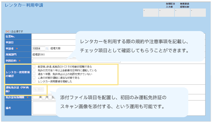 ▶レンタカー利用申請