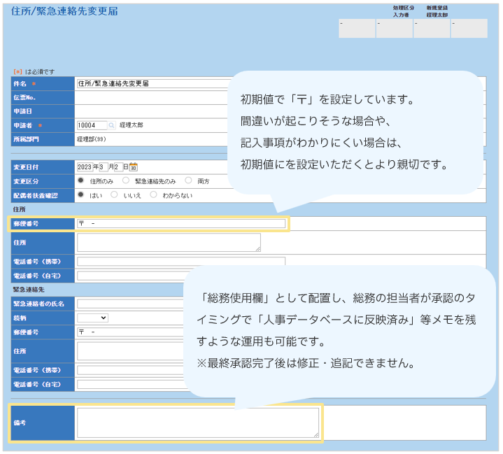 ▶住所/緊急連絡先変更届