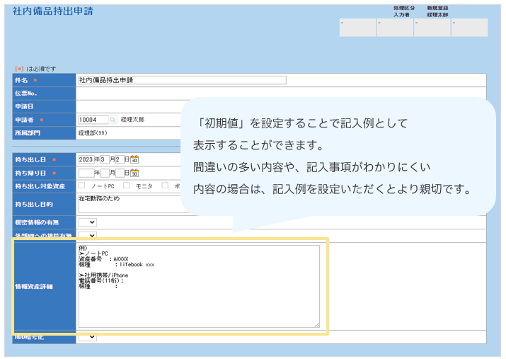 ▶社内備品持ち出し申請