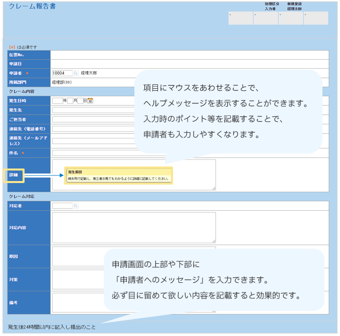 ▶クレーム報告書