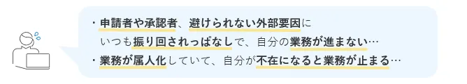 ・承認者に説明したり、担当部署と調整したりと余計な手間がかかっている。