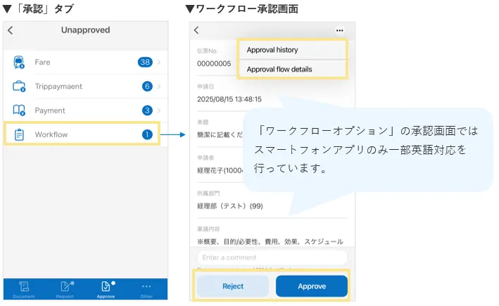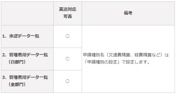 - 申請者/承認者が利用する画面やメールを、日本語と英語で切り替えて表示することができます。