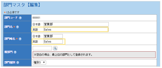 「○○名英語」というような表記で英語情報を登録する項目が表示されます。