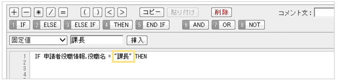 IF 申請者役職情報.役職名 = “Manager” THEN