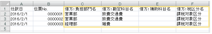 【例】勘定科目、補助科目、税区分などを「名称」で出力する場合