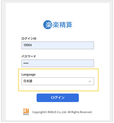 前回ログイン時とは異なる言語が初期値として表示されることがあります。