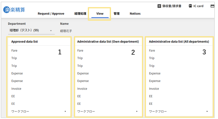 なお、「経理処理」タブ、「管理」タブは英語対応の対象外です。