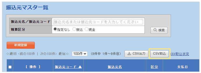 振込元マスタのCSV取込の手順は以上です。