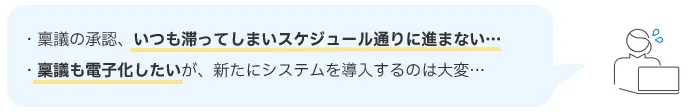 紙の回覧で承認が滞ったり、メールの見落としで差戻しのやり取りに時間が取られたり、