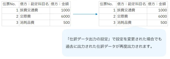 ただし、手順によっては「仕訳データ出力の設定」で変更した内容は反映されないため、