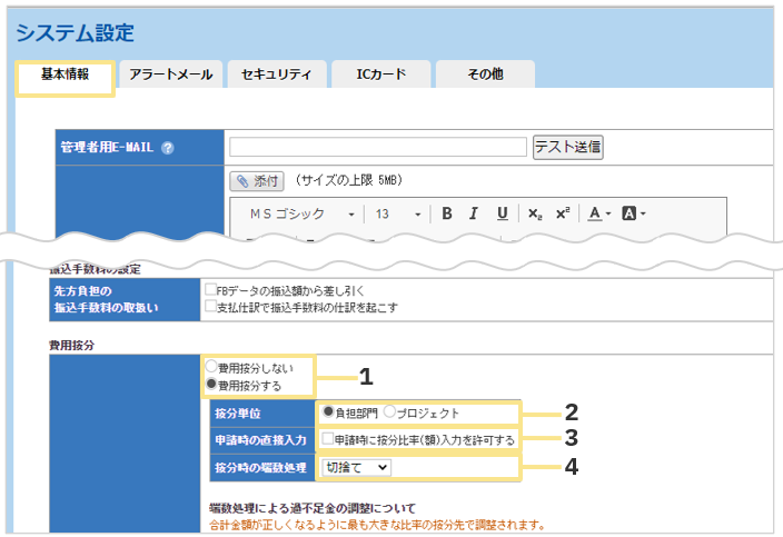 詳細は、申請ルールの設定 > 4.負担部門 をご確認ください。