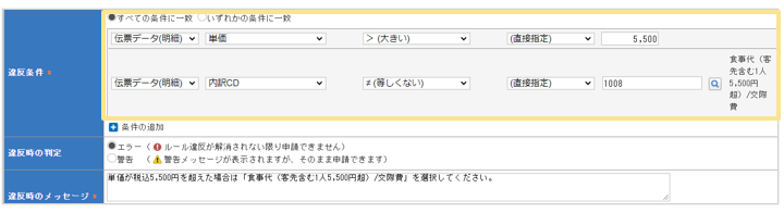申請ルール 単価が特定の金額を超えた場合、特定の内訳を選択させたい
