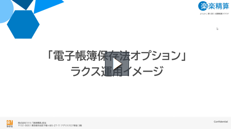 トップ > 電子帳簿保存法 > 電帳法:お役立ちコンテンツ > 電子帳簿保存法対応・ラクス運用イメージ 紹介動画 楽楽精算CS 2023/01/01 09:00 電子帳簿保存法対応・ラクス運用イメージ 紹介動画 「楽楽精算」の「電子帳簿保存法オプション」を利用し、弊社ラクスでどのように運用しているかをご案内します。 再生時間 2分01秒(音声あり) いいね 共有する 共有する リンクをコピー