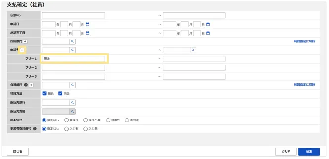 | 精算区分 | 現金 を選択 |