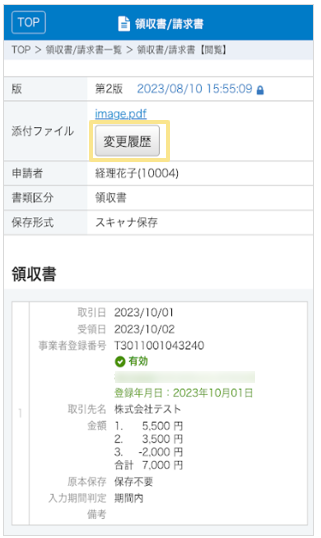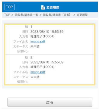 3.「変更履歴」画面にて確認