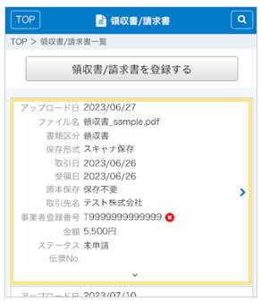 2. 編集する該当の領収書/請求書をタップ