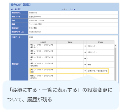 【「必須にする・一覧に表示する」の設定変更を行った場合】