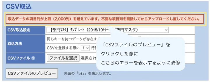4.CSV取込時に項目数が2,000項目を超えていた場合にエラーを表示するように改修