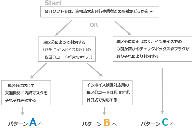何かしらのフラグで会計ソフト側が判別する場合、上記のパターンCのほかに、