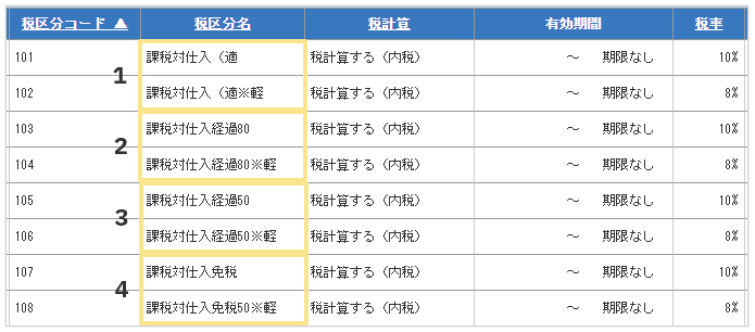 ①:適格請求書発行事業者からの仕入れの際に利用する税区分