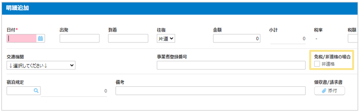 | ※電車、バス等での移動を含む精算等においては、インボイスの発行義務がないことから、 事業者登録番号欄を空白で申請するケースが多くなることが想定されます。 そのため上記計算式を設定する場合は、インボイスの保存が不要な取引の精算について ご注意ください。 詳細は 「事業者登録番号」の有無をキーに事業者に応じた税区分/フラグを出力する計算式を設定する場合の特例への対応方法を知りたい をご確認ください。 |