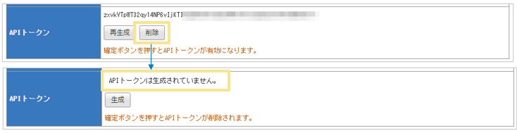 APIトークン欄の「生成」ボタンをクリックし、APIトークンを生成します。