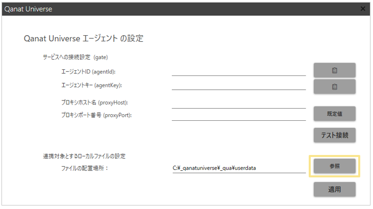 「Qanat Universe Agent(エージェント)」の「ファイルの配置場所」をご確認ください。