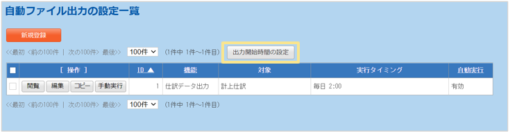 変更前に自動ファイル出力の設定 > 出力開始時間の設定 注意をご確認ください。